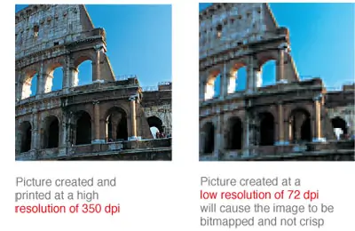 If you’re pulling images from the web, they’re usually only 72 DPI — fine for screens, but too low for professional printing. Always use high-resolution images for the best results.